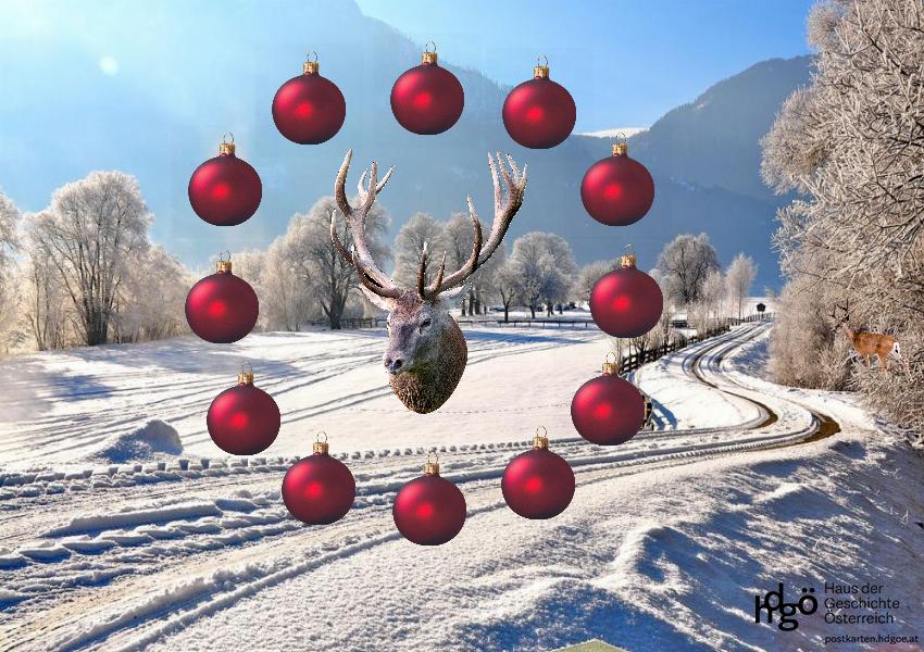 Eine alternative Weihnachtskarte gesucht? Kreieren Sie mit dem hdgö-Postkartengenerator unter postkarten.hdgoe.at ganz besondere winterliche Grüße. Grafik: hdgö