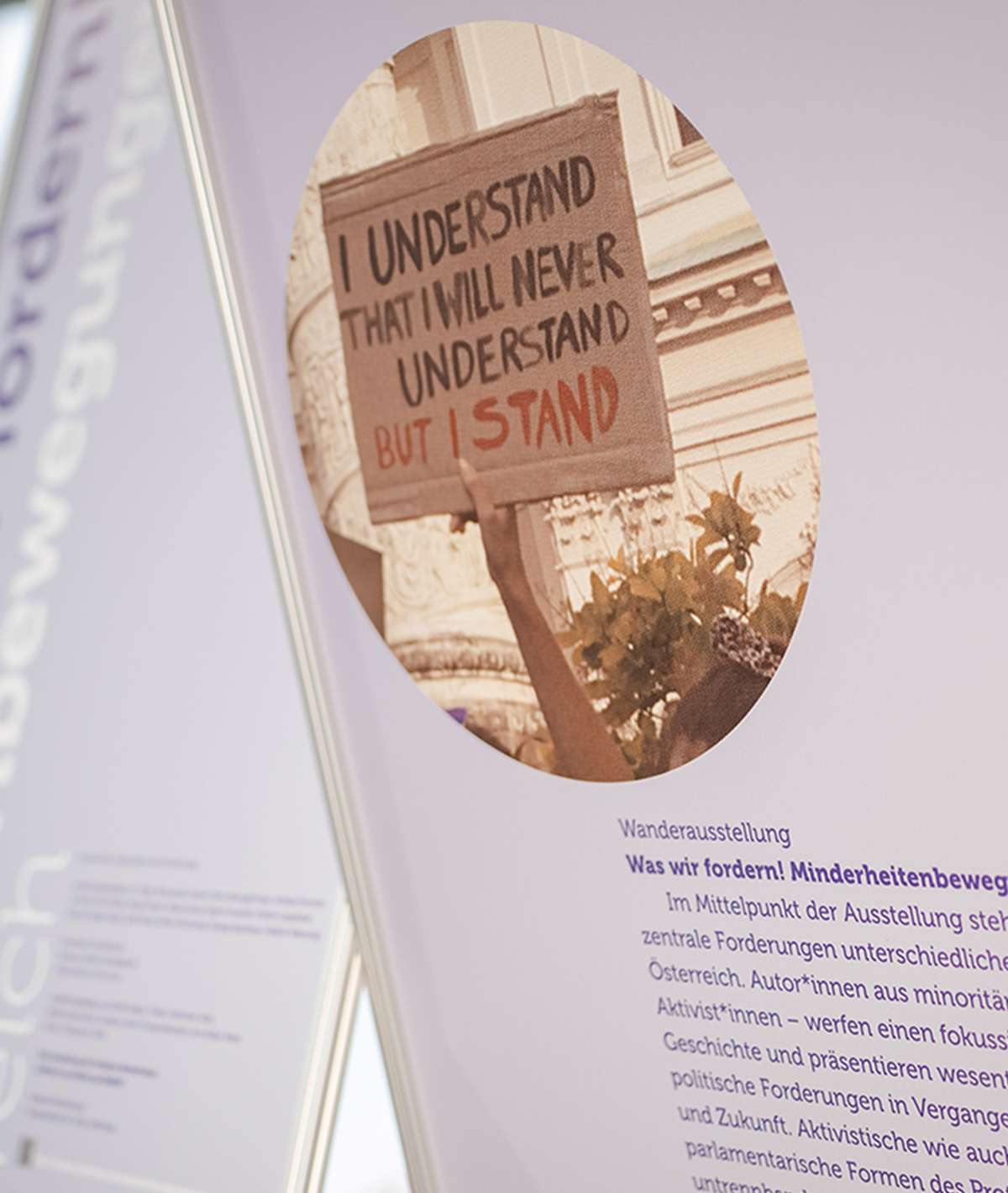 Zahlreiche Minderheitengruppen kämpfen seit Jahrzehnten – und auch heute noch – gegen Diskriminierungen an. Aktivist*innen von zwölf Gruppierungen kommen in der Foyer-Ausstellung „Was wir fordern! Minderheitenbewegungen in Österreich“ direkt zu Wort und geben Einblicke in ihre Lebensrealitäten und Geschichten. „Mit uns, nicht nur über uns sprechen“ ist ein zentrales Anliegen aller. Die Wanderausstellung der Initiative Minderheiten zeigt die Vielfalt minoritärer Bewegungen und die gesellschaftliche Bedeutung ihrer Forderungen. Noch bis 15. Jänner ist die Schau im Foyer des hdgö zu sehen.